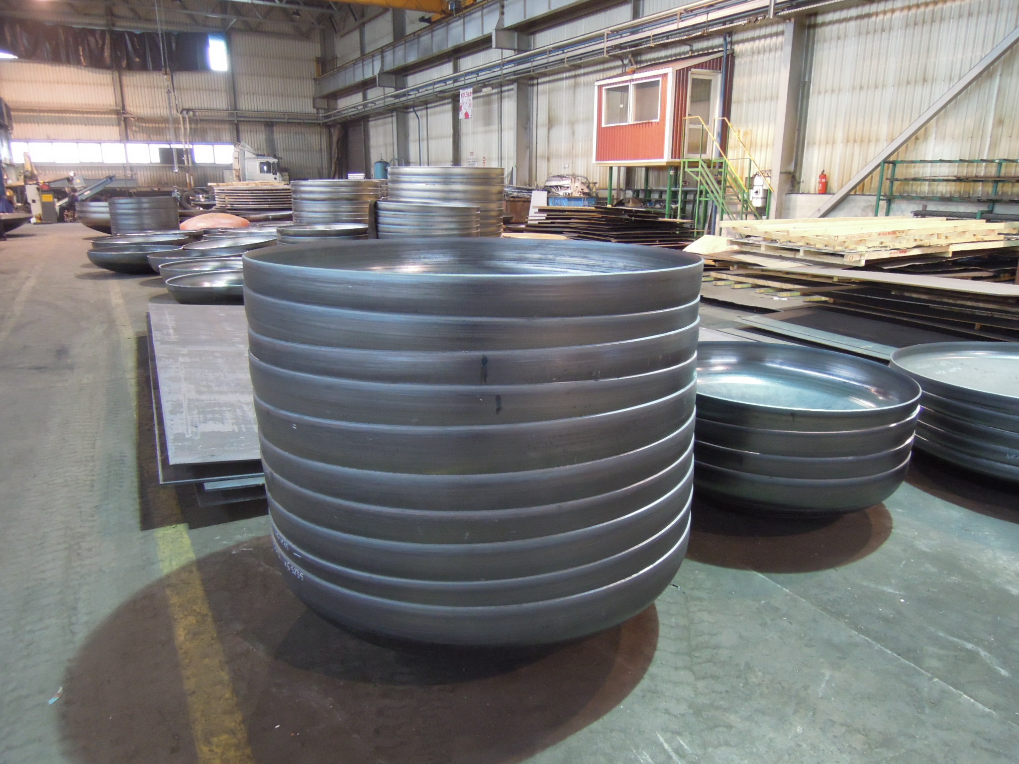 Zakres średnic produkowanych dennic: od 800 mm do 4600 mm, dennice płaskie do 5000 mm. Dennice możemy wykonywać z blach o grubości do 20 mm.